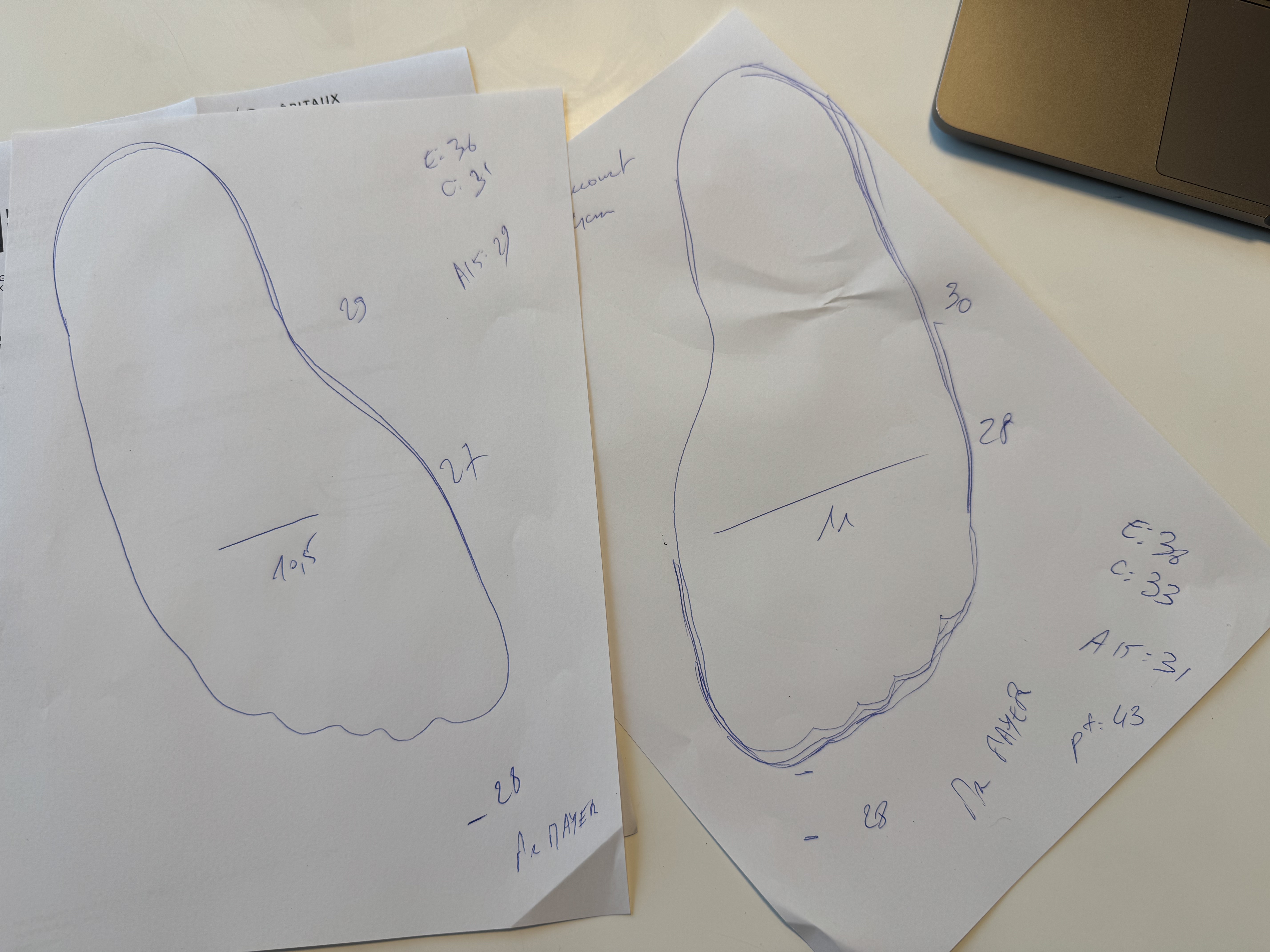 Gauche Droite Talon de la Forme 30 15 Talon de la Chaussure 15 15 Type orthèse Sous Talon 40 5 Molysère Ligne Des Flancs 25 5 Relevé 15 15 Semelle d'Amplitude 5 5